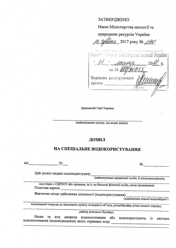 Дозвіл на спеціальне водокористування