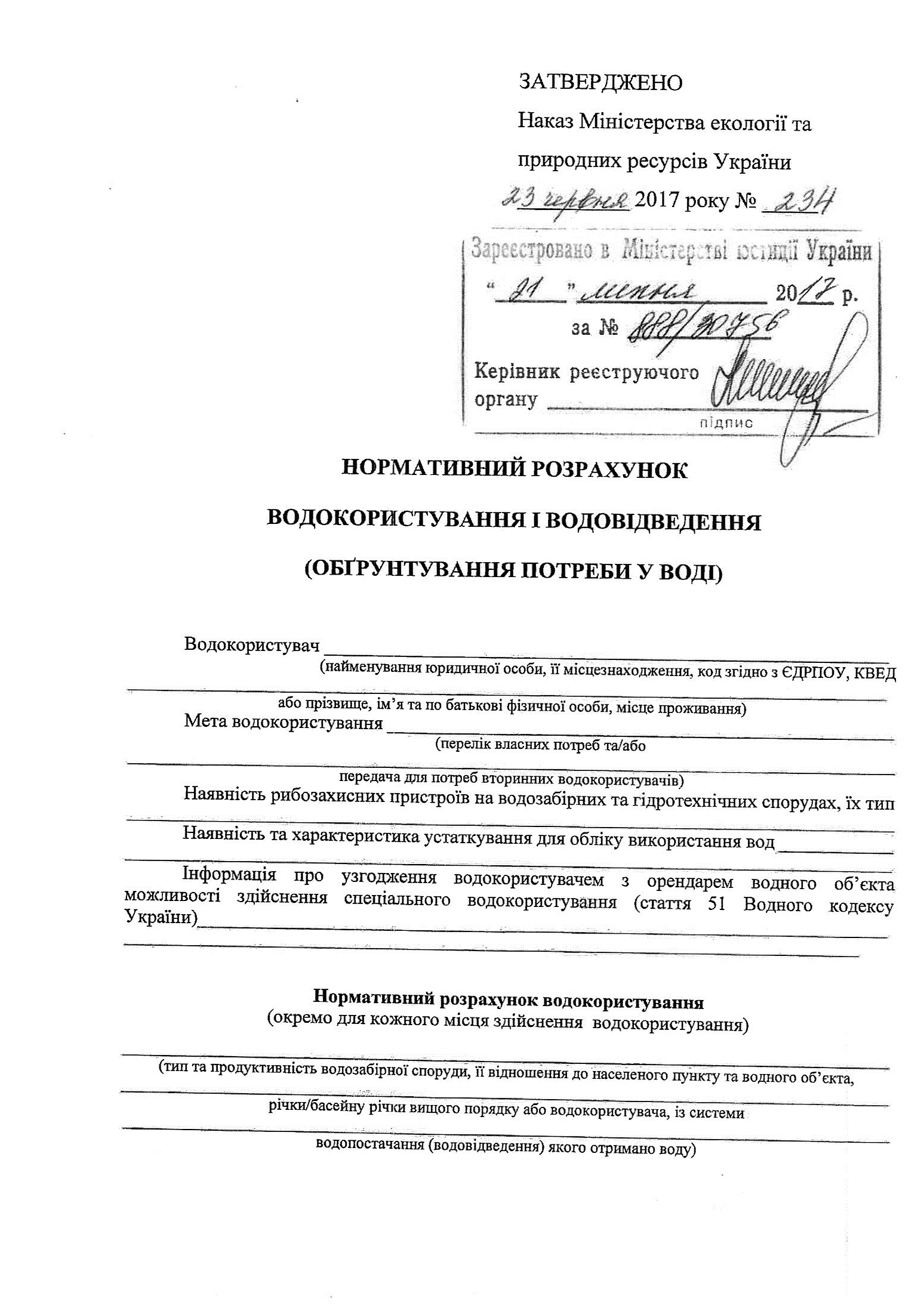 Нормативний розрахунок водокористування та водовідведення (обґрунтування потреби у воді)